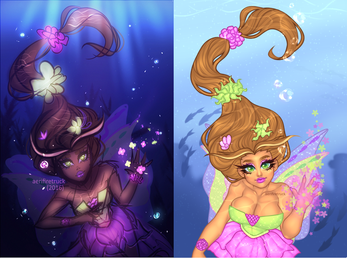 So I did/do the only thing I can think to do. I drew the ocean over and over again to create the happiness and belonging I wish I had when I was near it. My art as a teenager was very dark, like my life prospects, but found itself increasing in color and theme as my mental health improved. Look at the difference between these galleries: